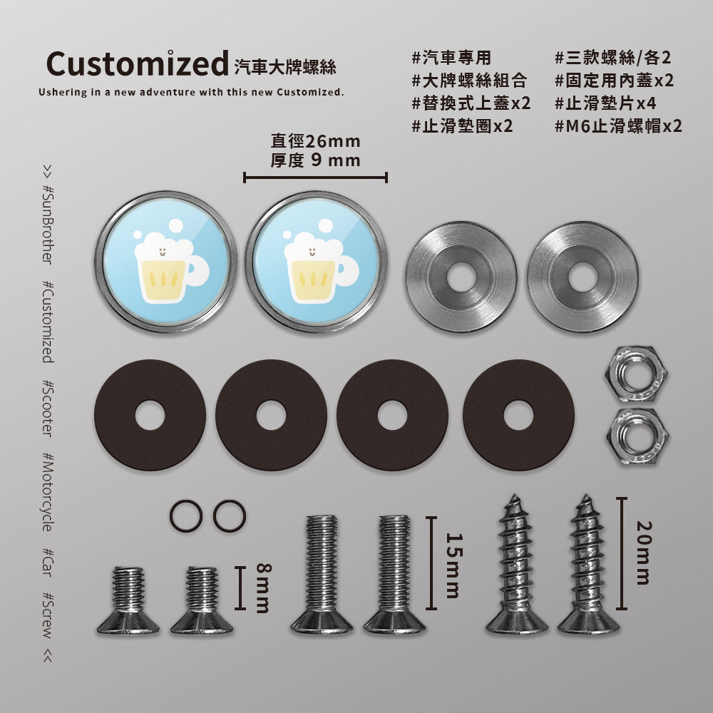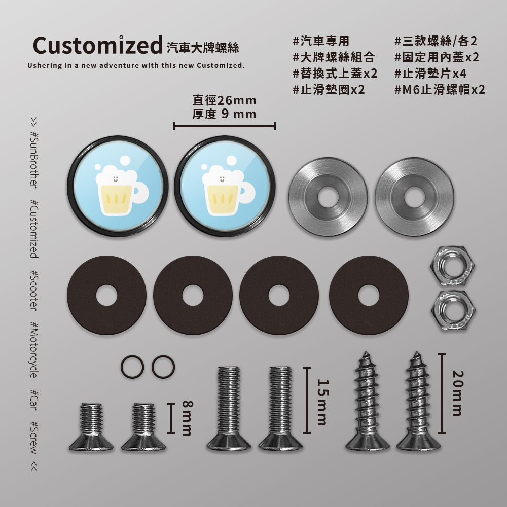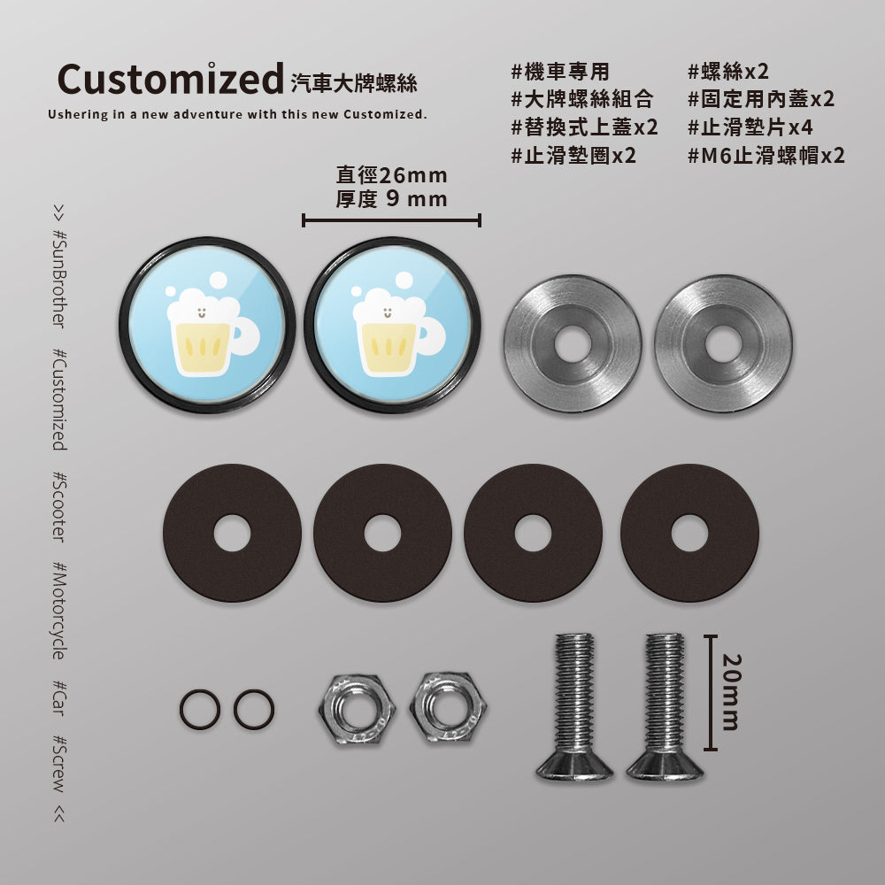 啤酒/HAppiNess/汽機車大牌螺絲 SunBrother孫氏兄弟 - 消光黑 / 機車/螺絲20mm基本套組 / 有 缺貨,將在補貨後立即發貨