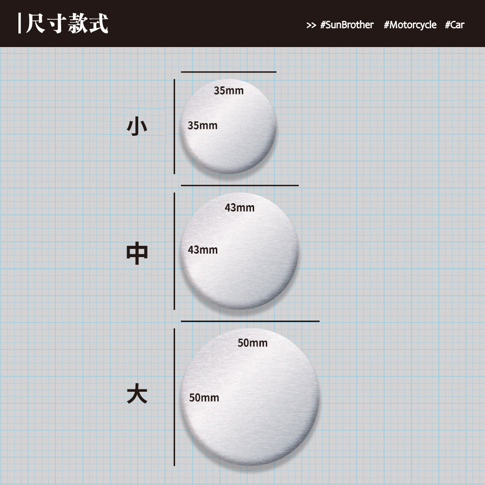 - 尺寸:圓形直徑35mm、圓形直徑43mm、圓形直徑50mm